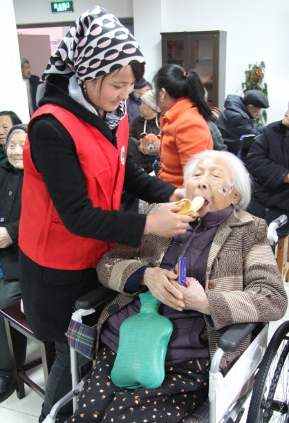 2月24日下午,身穿志愿者服装的新疆学生为幸福托老院的老人们带去水果和饼干等礼物,并热情的陪老人们聊天,不怎么流利的汉语中,包含的却是同学们的关心。在短时间的交流中,学生与老人们谈论生活中的趣事,学习本地的方言。新疆学生主动为行动不方便的老人喂香蕉,分发水果和饼干,老人们露出喜悦的表情,不断说:“谢谢,谢谢!”随后,新疆学生排好整齐的队伍,为老人们献上了精心准备的节目,在“共青团团歌”嘹亮的歌声中表达他们对老人的祝福,希望他们能够身体健康,长命百岁。同时,新疆学生也为老人们带去别具特色的新疆舞蹈节目,在欢快的节奏中翩翩起舞,不仅给老人们带去了欢乐,也让老人们感受到关爱。最后,一位新疆同学说道,非常荣幸能够参加这次志愿者活动,给老人们送来温暖。我从新疆来到这里读书受到很多人的帮助,我希望自己也能帮助别人,回报社会,发扬雷锋精神。