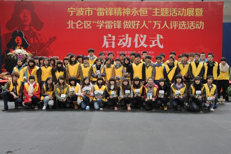 雷锋精神以人民至上为价值取向,把关爱他人、助人为乐作为目标;始终具有感动人心,温暖社会的道德温度。为了发扬雷锋精神,3月2日下午在宁波北仑体育训练基地开展了宁波市“雷锋精神永恒”主题活动展暨北仑区“学雷锋做好人”万人评选活动启动仪式。我院50位学生作为大学生志愿者代表参加了此次启动仪式。