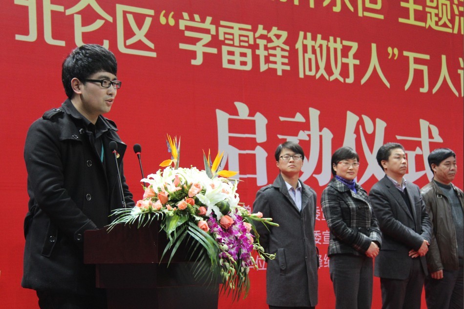 在本次启动仪式我院学生代表、院团委学生干事王嘉洋同学进行了发言,在回顾了雷锋同志的英雄事迹时深刻地认识到,作为一名大学生应继承雷锋精神,把那杆树立在猎猎之中的大旗当成我们的信仰,继承雷锋精神,成长为对人生有领悟,对精神有追求,对真诚有感应,对家园有深情的人。同时,以自己在大学生活中的体验和感受为例说道,雷锋不在了,继承了他的奉献精神的人组成了一个共同的名字,那就是“志愿者”。我院的青年志愿者在浙洽会、消博会、智博会、国际女排邀请赛等大型活动中,展现出了热情与坚毅,在探望敬老院、文明公交行、援外班等服务中,展现出了善良与美丽。他们的笑容成为了一条靓丽的风景线,他们的称呼成为了最闪亮的名片。最后,王嘉洋同学说道,我们身边的所有人都应成为一个落实科学发展观的先锋者,成为一个建设文明社会的排头兵,成为一个弘扬雷锋精神的实践者。让我们一起为实现这个伟大的目标而共同努力。