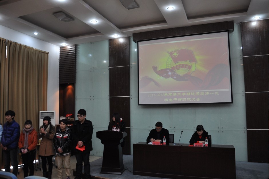 新的一年,新的学期,为了提升学生干部队伍整体素质,加强学生干部队伍的管理和培养。3月8日,我院院团委在明德楼105室开展了“2011――2012学年第二学期院团委第一次学生干部交流大会”。院学工部副部长、院团委书记励宁老师、院团委副书记赖敏雅老师,以及院团委全部学生干部出席了此次交流大会。