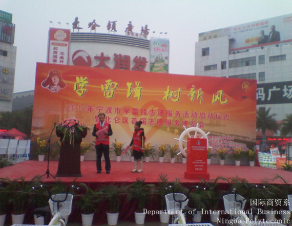 2012年3月4日上午,为纪念毛泽东主席“向雷锋同志学习”题词49周年,以“向雷锋同志学习,做新时代大学生”为主题的,宁波职业技术学院2012年“学雷锋活动月”启动仪式在曼哈顿广场隆重举行。
