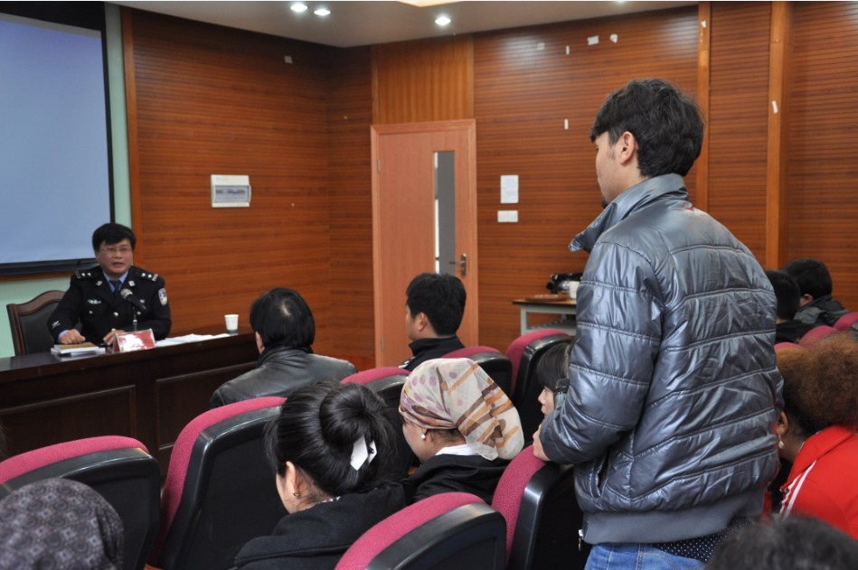 讲座结束后,在座的新疆同学与张副所长进行了面对面的交流,咨询了自身在日常生活当中遇到的问题,张副所长一一进行了解答。同时,大?派出所辖区民警沈阳林也为在座的新疆同学讲述了我院周边的治安情况。