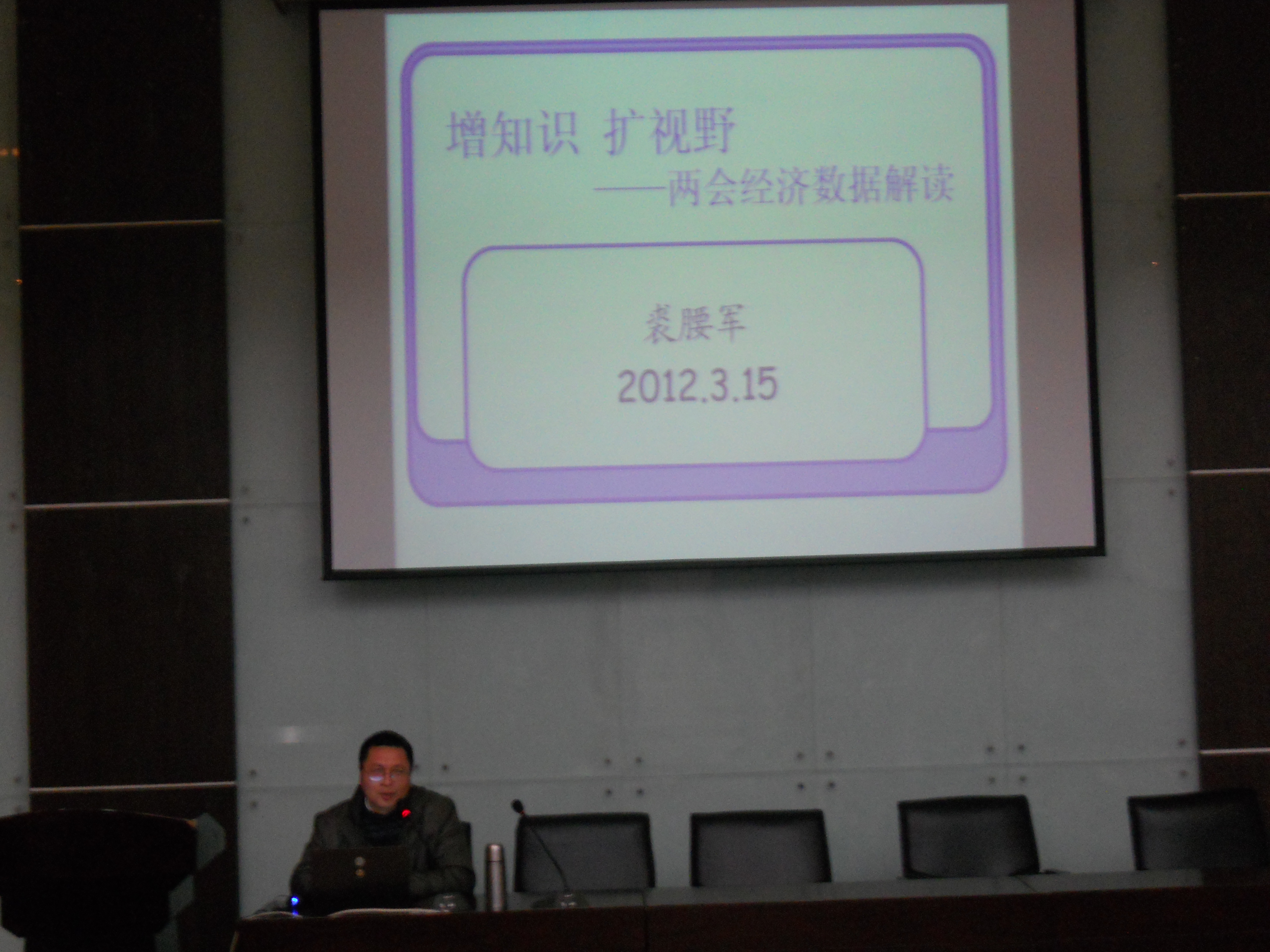另外,裘腰军老师还对就业,三农投入,社会保障等做了分析,其中,在医疗保障方面,裘老师觉得看病难,看病贵的现象任然存在;在节能减排方面,能源、大气排放方面,逐年得到改善,国民的节能意识在一点点的提高。接着,裘老师又对我国的经济发表了见解,说我国自2001年12月11日开始,正式加入WTO,至今为止已经11年,标志着中国的产业对外开放进入了一个全新的阶段,其经济的发展速度在不断地增长,给人们的生活水平不断地带来福利,使中国顺着时代的潮流一直向前发展,实现人们的小康甚至更好的生活水平。