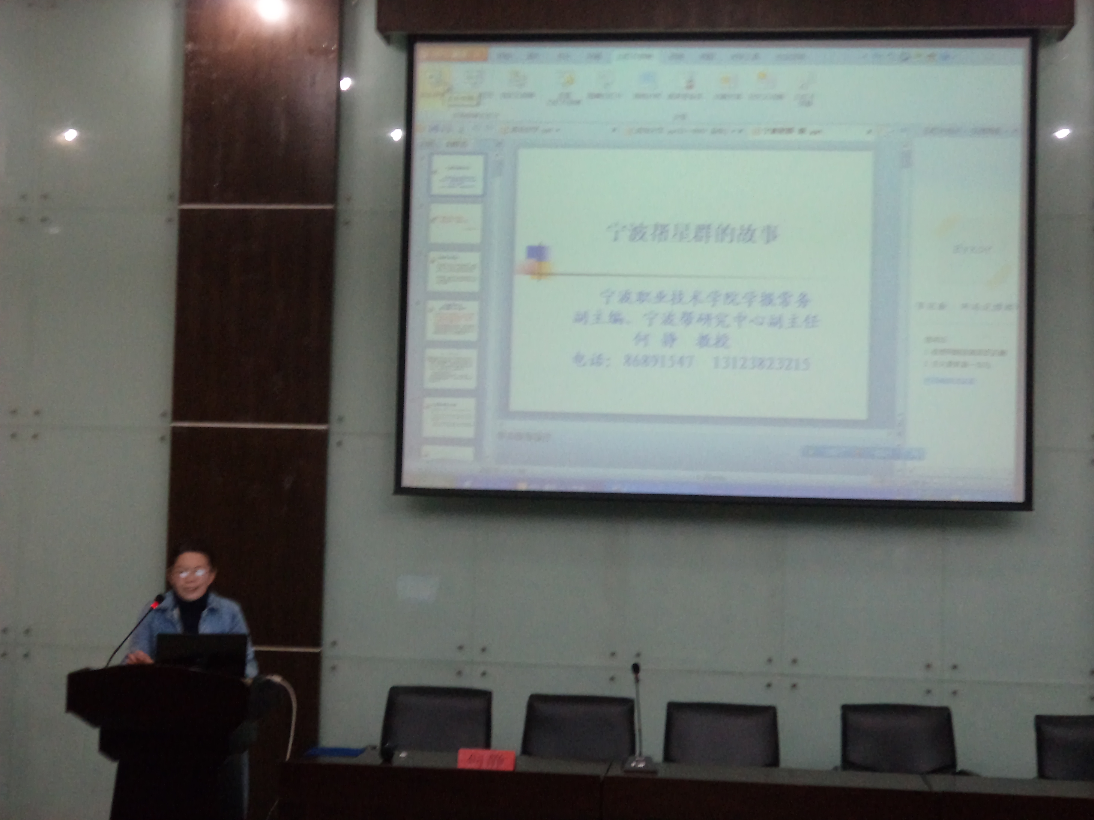 图为:何教授讲述宁波商帮文化现场