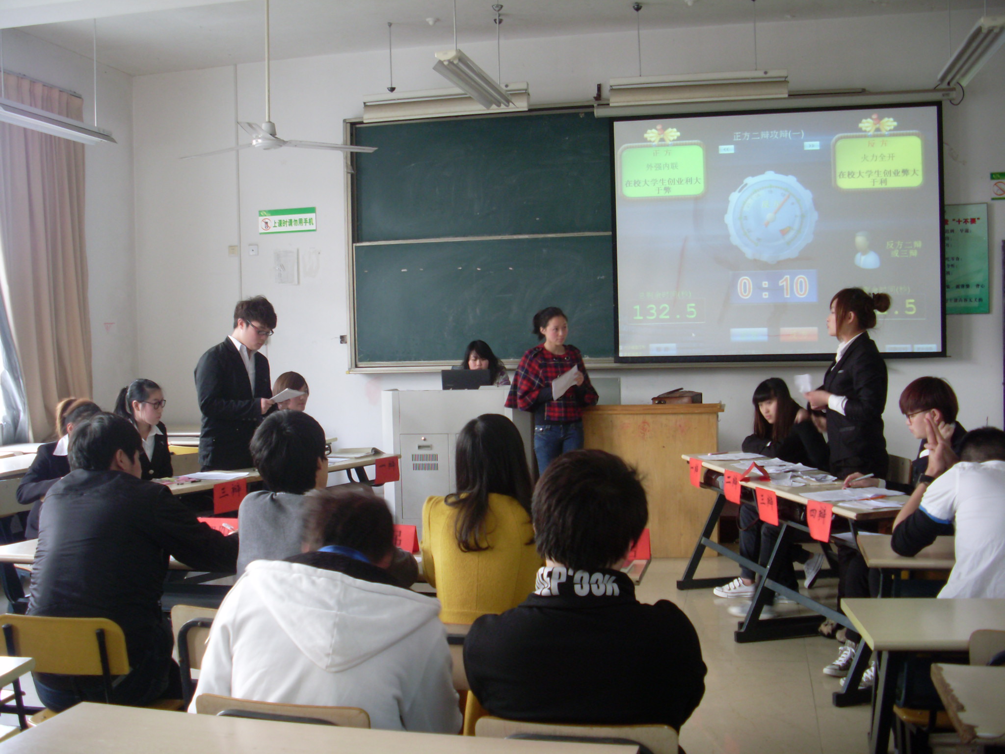 为活跃大学生思维,提高应变能力,提升自我信心。工商管理系于3月22日中午12点在精技楼103、105、111、113教室举行了主题为“大学生创业的利与弊”的辩论赛预赛,此次比赛请到了学生会的大二干事担任评委,并有八支队伍参与到此次比赛中。