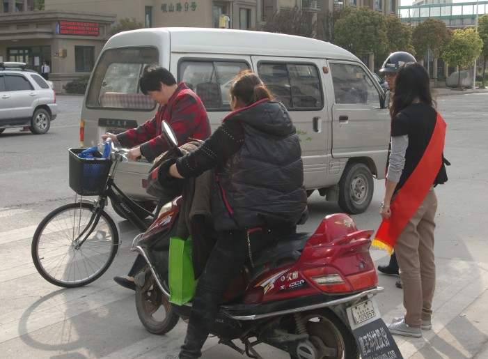 来到新蕾幼儿园后,志愿者们通过与新蕾幼儿园负责人的接洽后了解到了此次活动的主要任务,负责人说道,“你们今天主要的任务就是要及时制止那些过马路横冲直撞的小朋友,并提醒他们小心过马路。而且还要仔细观察每位小朋友是不是由家长陪同走出校园,如果是小朋友一人独自离开校园,那就要提醒小朋友要留在校园内,等到家长到来后一起离开。”随后,志愿者们身披授带,开始了今天的任务,有两名志愿者站在新蕾四季幼儿园门口两侧,其余两名站在公路旁指挥交通,确保小朋友们安全过马路,另外还有一名志愿者站在大门内侧负责观察小朋友们是否是由家长陪伴走出门口,门口两侧的志愿者们协助一起观察小朋友,并与小朋友们亲切道别。指挥交通的志愿者们指挥开车来接小朋友的家长们,让他们把车从大门左侧开入,右侧开出,以防止交通堵塞和减少往来车辆对小朋友们构成的生命威胁。一个半小时后,新蕾四季幼儿园的四百多位小朋友陆续在家长的陪同下安全离开校园。