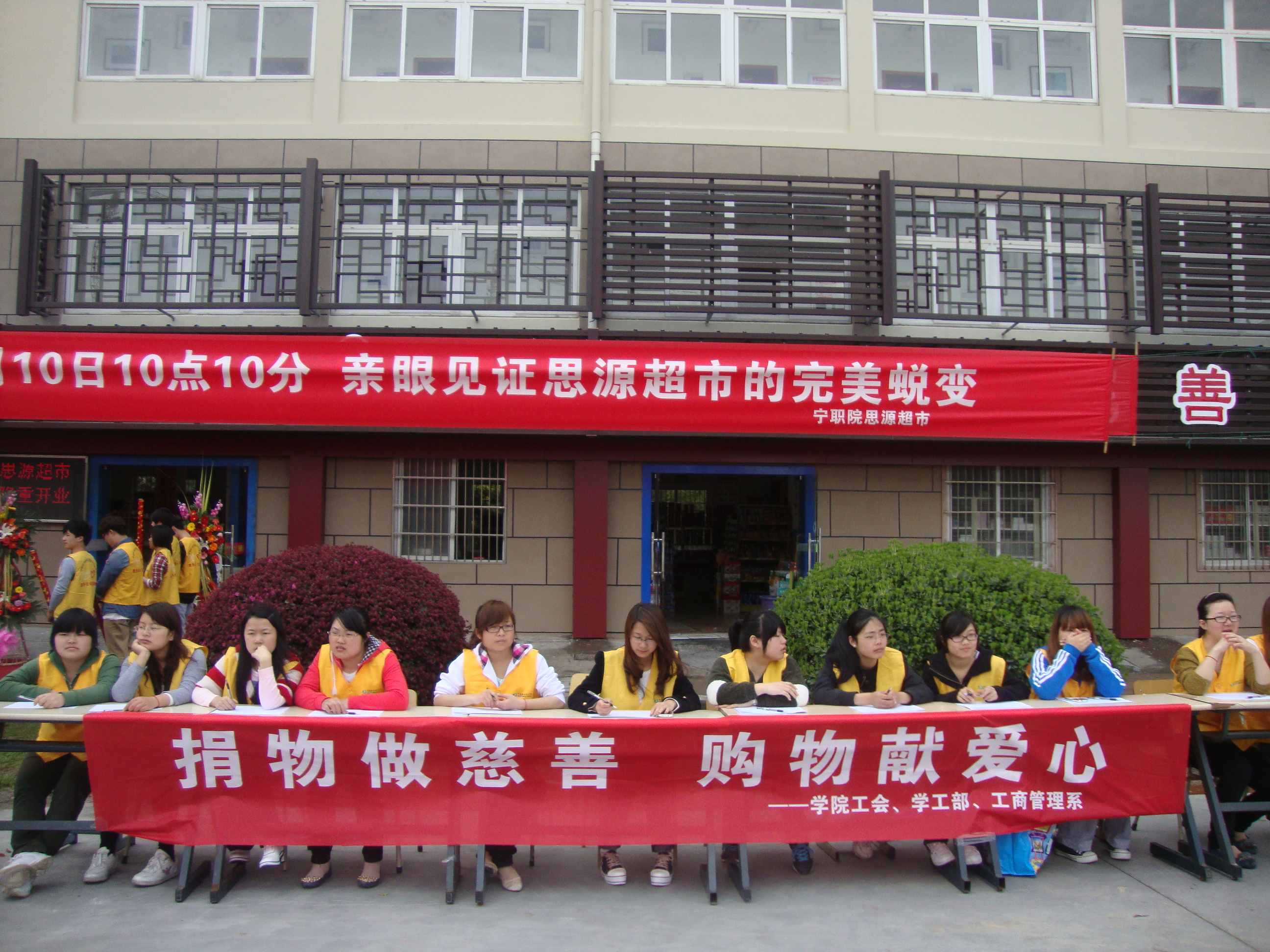 “只要人人都献出一份爱,世界将变成美好的人间”,伴随着歌声的阵阵回响,时刻提醒我们要心存爱意,用爱来审视这个世界。为了回报同学们在前一阶段的爱心捐物行动,能有一个更好的平台来传递爱心,由学工部、院学工会、工商管理系一起举办的思源超市开张暨十一届宁波职业技术学院大学生科技文化节开幕仪式于4月10上午10点10分在思源广场隆重举行,寓意思源超市新开张后“十全十美”的新景象。
