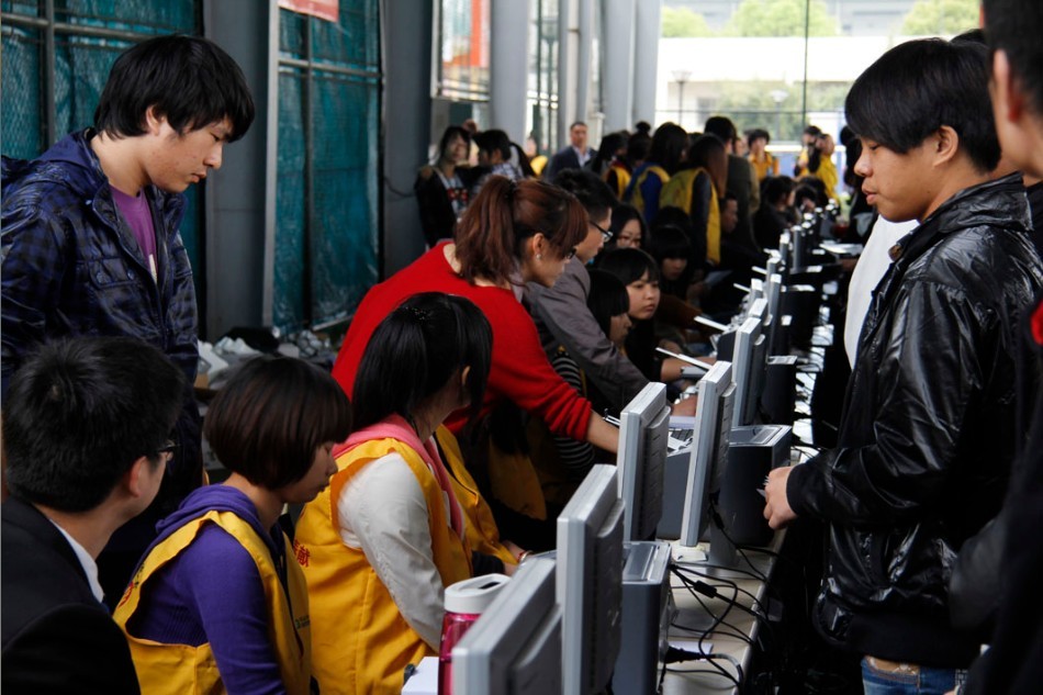 在自主招生的现场,许多家长陪同考生一起来我院咨询,当考生进去上机考试时,许多家长都表示“很紧张,希望他们自己能发挥出色,争取进入宁职院。”当考生从考场出来的时候,家长们都上前去与考生交谈,其中有的考生神采奕奕,有的则满脸沮丧,真可谓是“月儿弯弯照九州,几家欢乐几家愁“。另外,身穿黄色马甲的志愿者们可谓是这次自主招生的一大亮点,他们耐心的为每一位需要帮助的人答疑解惑、指引带路,大中午的时候突然涌进了一大批人,他们连饭都顾不上吃,继续坚守自己的岗位,让每一个来宁职院的人都感受到了我院同学满满的热情。