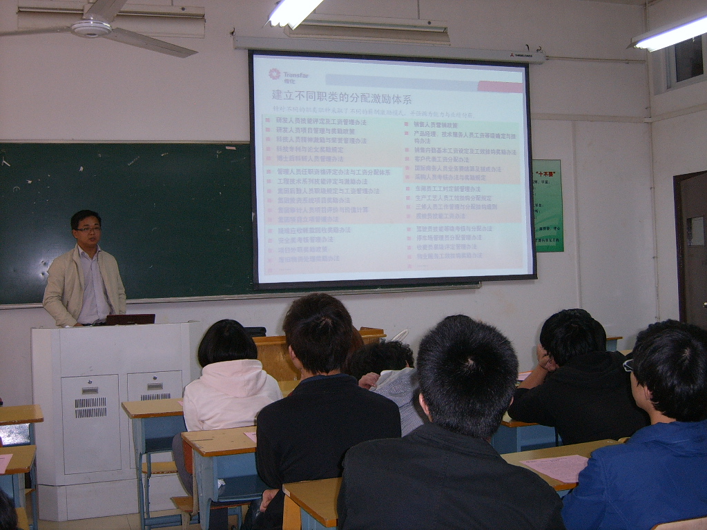 最后,沈经理与同学们进行了进一步的交流沟通。同学们提出了各种各样关于浙江传化合成材料有限公司的问题,沈经理一一作了细致地回答,让同学们对公司有更深的了解。其中一个同学提问道:“我想去嘉兴那边的公司,这样可以吗?”沈经理回答道:“你把你的简历发给我,我再把它向那边的公司提出申请,到时就等待审批就可以了。”同学们都得到了自己满意的回答。