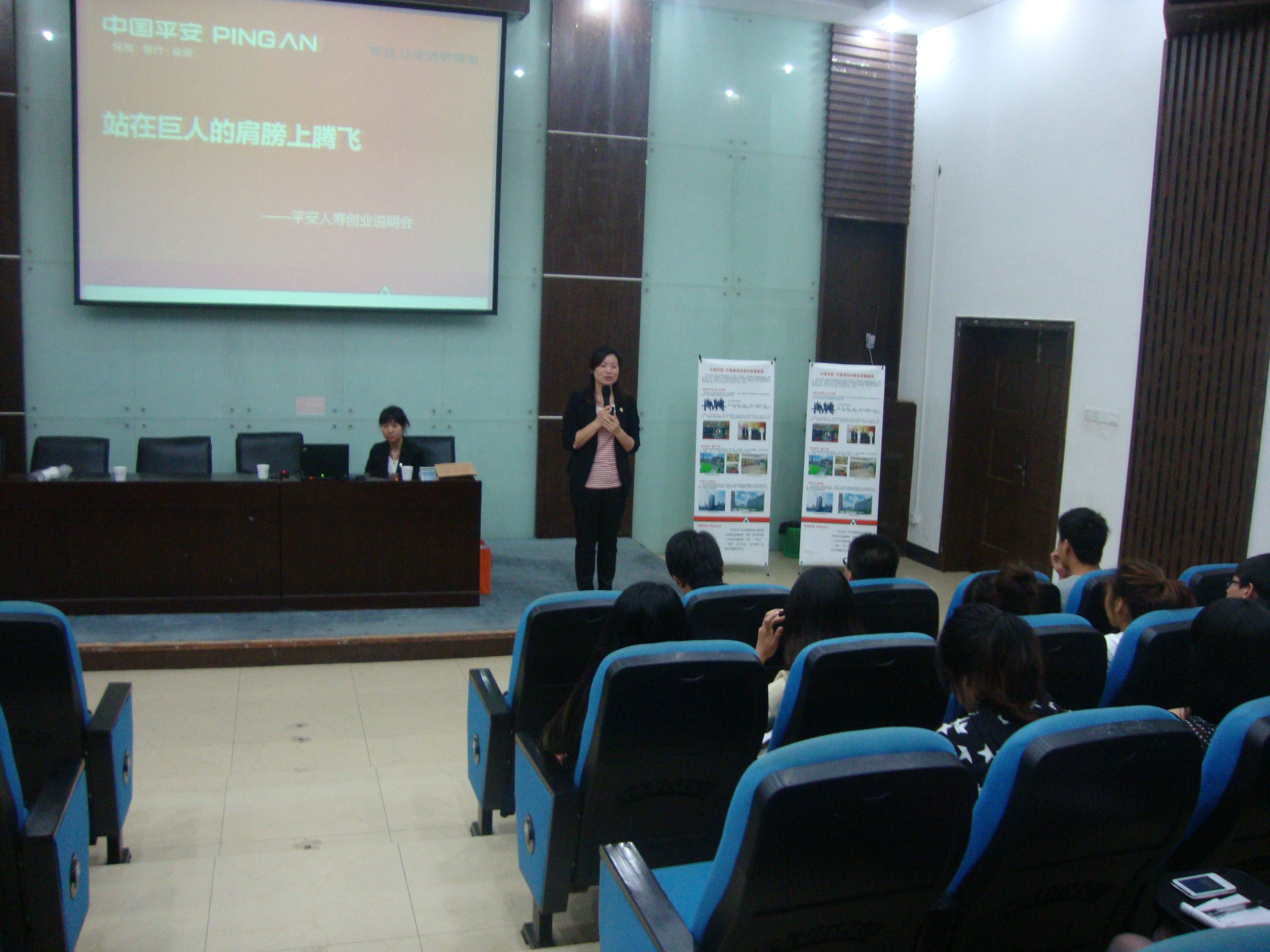 为让学生有更多的就业机会,能够明白学习之后所要面对的种种就业问题,有更多的就业方向,4月20日中午13:30,工商管理系系辅导员赵琦特邀中国平安人寿保险北仑分公司总经理董雪莲为工商管理系的大二学生做“平安人寿创业说明会”。