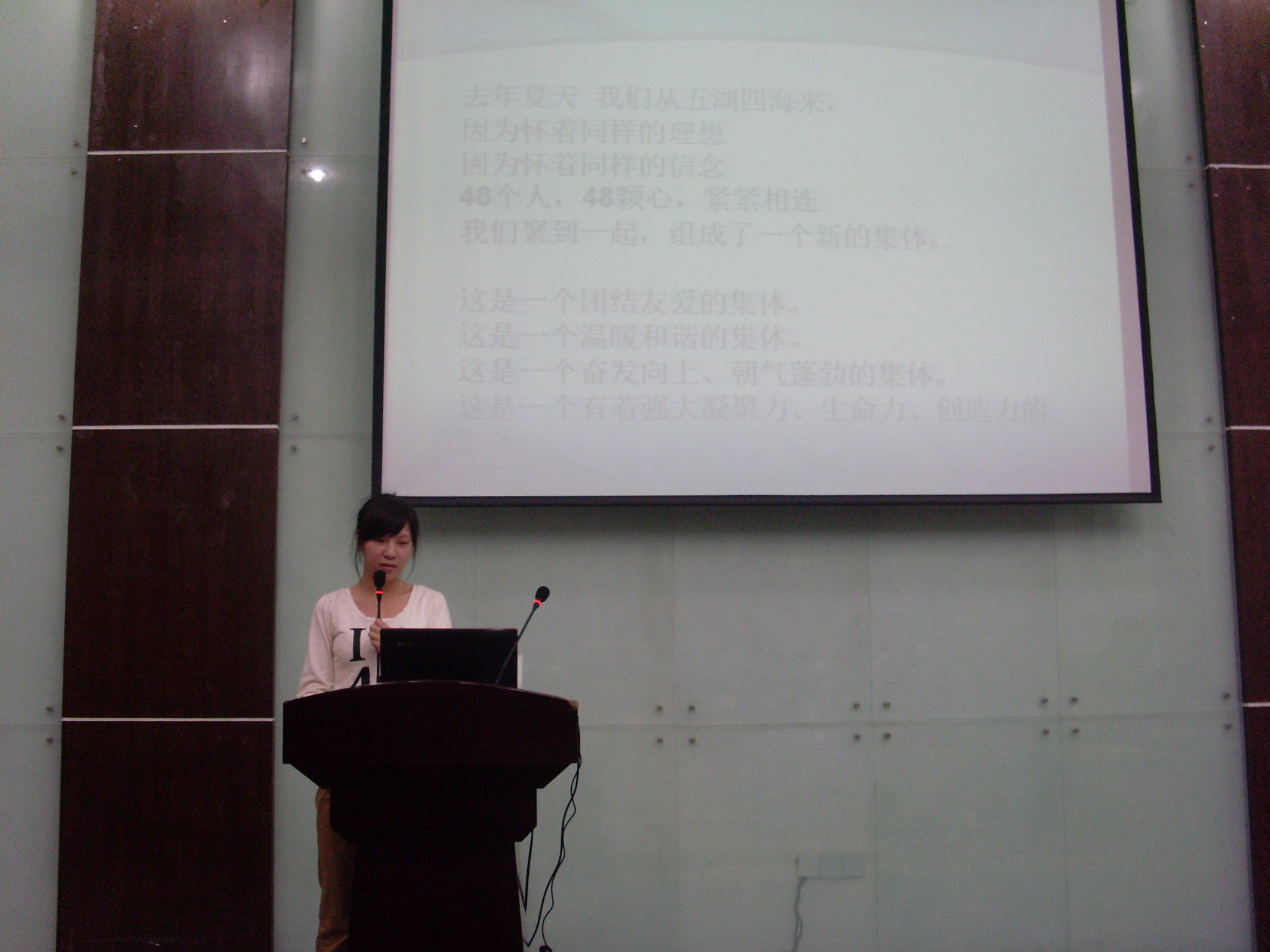 本次比赛共有来自12个班级进行参赛,一一展示各自班级的特色,比赛伊始,会场座无虚席,大家一起聆听着每位选手上场讲述自己的班级。选手们感情真挚,细细叙说着他们的班级历程,会场上时而悄无声息,时而掌声雷动,时而引来会心的微笑,选手和听众,在彼此的述说和聆听之间,把每一位观众带入了各自班级的集体中,也向大家展示了自身班集体的荣誉感和自豪之情,更坚定了对自身班级热爱和信念。每一位选手都娓娓道来各自班级在过去的一学期中发生的点滴趣事,一起经历着军训的磨练,一起为着大合唱而努力练习,一起为着自己班级的特色项目而奋斗……重温着过去的点滴历程,让大家对于各自的班级有更多的了解。