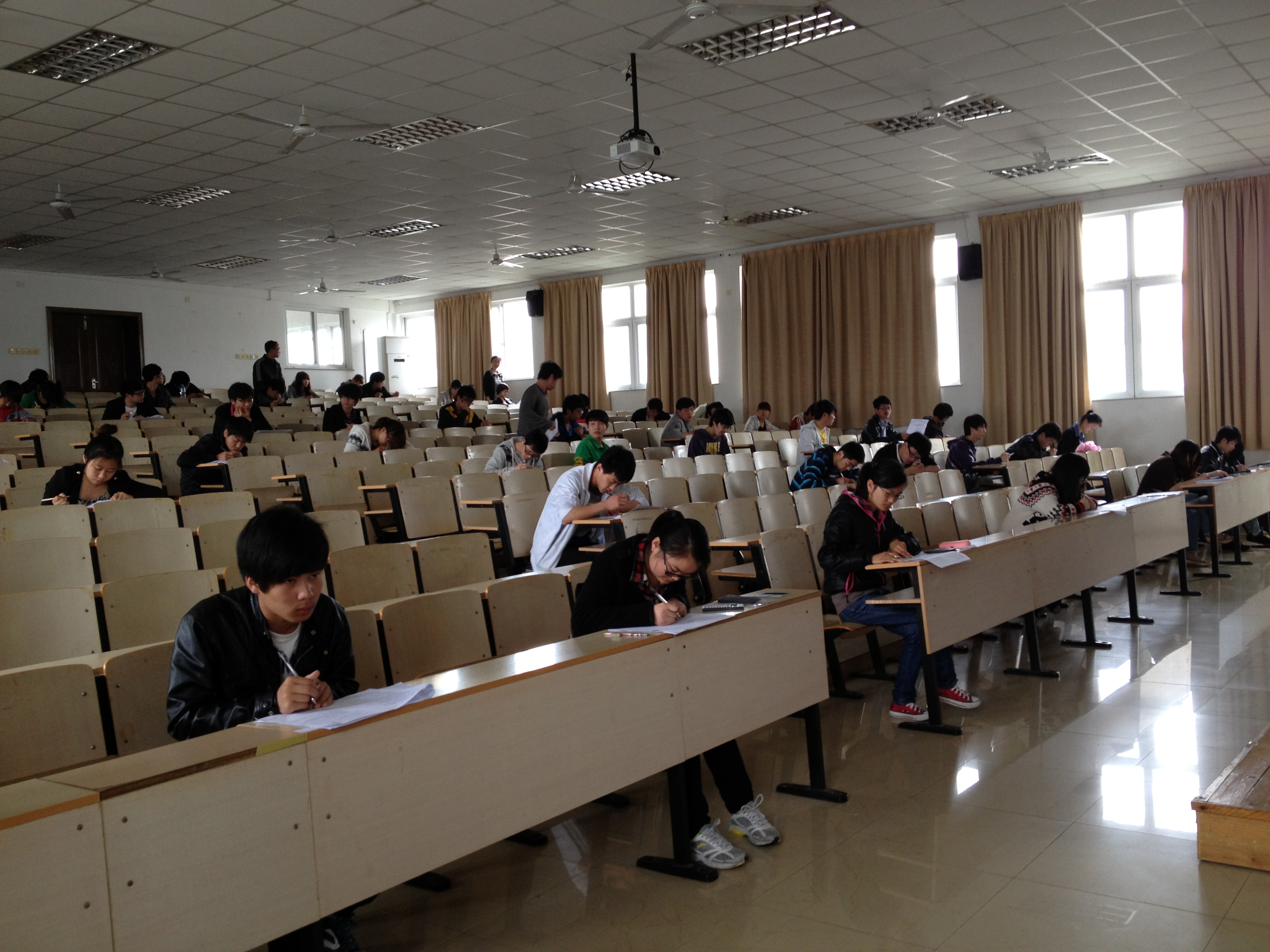 图为:同学们正在进行理论考试