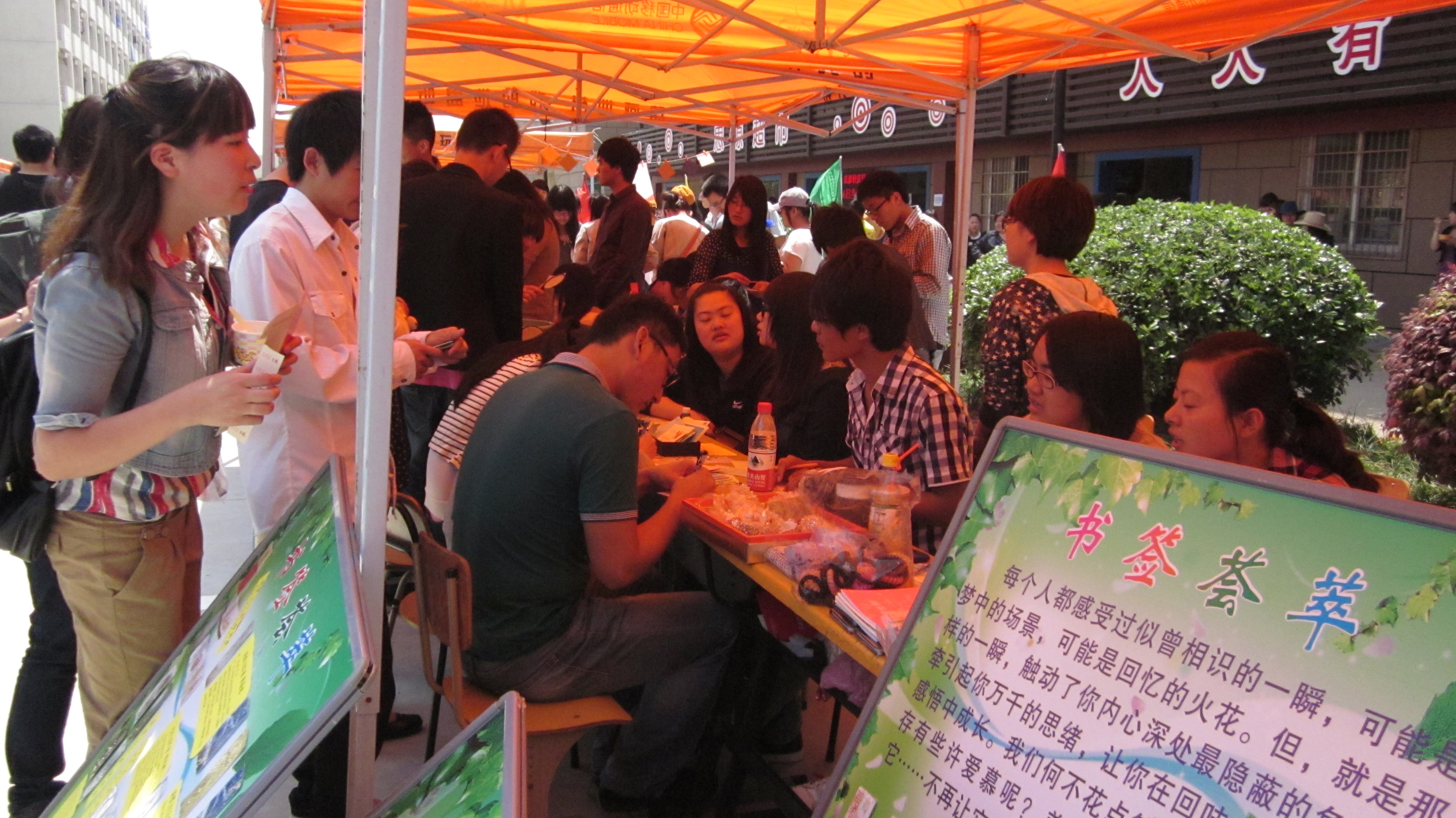 此外,位于我院文化街的各大社团文化店铺也是热闹非凡。如以茶会友的恬沁居--茶艺工作室、心灵手巧的结艺轩---中国元素工作室、恢弘大气的书法工作室等都是为校庆嘉年华篇章增添了华丽的色彩。无论是文化展示,还是文化成品出售,都令我院师生收获很多,也在传承中发展,在发展中创新,将我院的社团文化推向高潮。校庆嘉年华记载宁职成功的日子,一个展现社团联发展的平台,一个更加美好的一天。