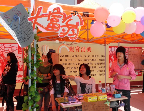 此次游戏竞赛区共设“顺风耳寻宝”、“机械轮盘”、“英文版我爱记歌词”、“Hey Waiter!(托盘比赛)”、“让子弹飞”、“激情一掷”、“你画我猜猜”、“用筷子夹住幸福”、“大富翁”等9个游戏项目,部分游戏项目带有闯关的形式,并设有一、二、三等奖和鼓励奖等多个奖项。丰富多彩的游戏活动吸引了众多同学的参与,活动现场一时间人头攒动,人声鼎沸,成为一片欢乐的海洋。