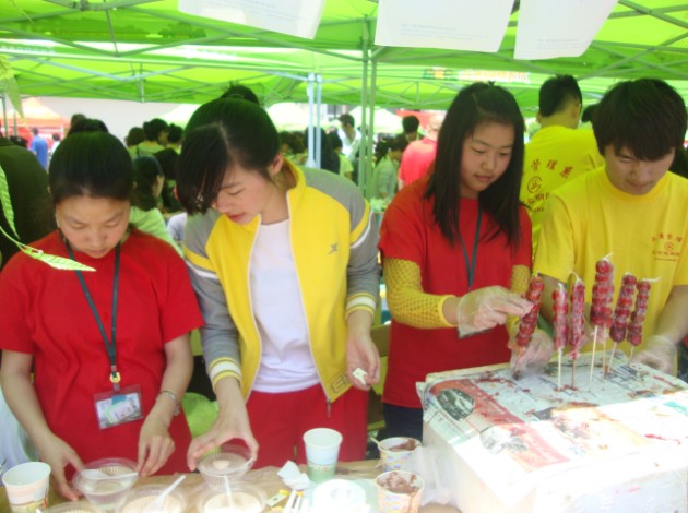 在美食区工商管理系也选择了不同口味的佳肴来满足同学们的需要,在“水果百汇”中,既有当季的鲜美水果,也有可口的凉粉冻吸引着顾客的驻足。而“90后我们的那些年”更是将我们回忆了一把童年的乐趣,那儿时的糖葫芦、棉花糖将我们一次次勾起童年的美好时光,因此,这些展区也是人群攒动,十分吸引人们的眼球,工作人员看着大家手中都拿着工商管理系的食品,十分开心。