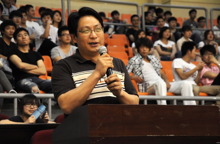 紧接着是学工部部长郭华恬老师发言,他首先代表学工部和团委对2012年宁职院夏季篮球联赛开幕表示热烈的祝贺。并对那些为本次比赛付出辛勤劳动的老师和同学表示衷心的感谢。介绍了去年和今年我院在体育方面的成绩,郭老师表示我院能在体育方面取得优异的成绩依靠老师和同学的共同努力,我院在接下来的日子里会更加重视篮球这项体育活动。郭老师对本次比赛提出了三个要求:第一,在比赛中顽强拼搏,保护好自己的同时保护好队员,避免损伤。第二,裁判员和工作人员本着公正,公平原则,把比赛组织好。第三,观看者不仅仅是单纯观看比赛,也是加强课外活动的机会。最后郭老师宣布本次夏季篮球联赛开幕。