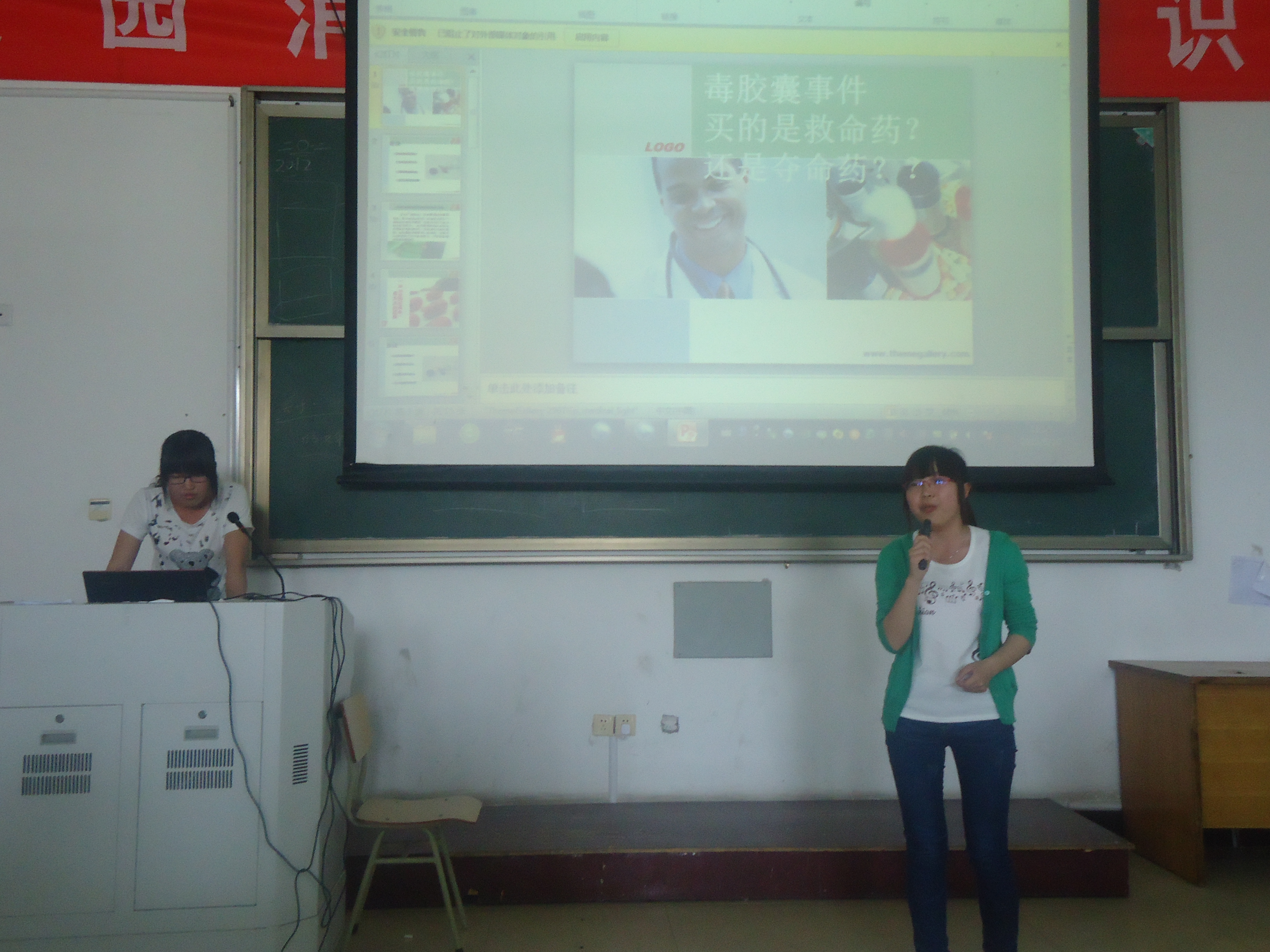 5月10日下午1点,我院应用化工系在精技楼501隆重召开以“毒胶囊”事件为主题的晨间播报比赛。应用化工系党总支书记徐帆老师,应用化工系团委书记童燕老师,应用化工系学生会主席龚旭,应用化工系团委副书记洪科杰,应用化工系文娱部部长?斌斌担任本次比赛的评委。来自应用化工系大一学生观看了本次比赛。