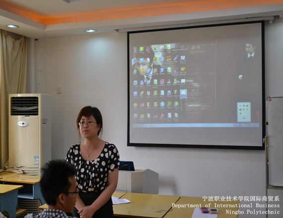 本次答辩先从国商3101班开始,该班的特色项目主题是“模拟广交会”。项目负责人介绍了项目建设的过程,通过对外贸企业的了解,联系企业,外出采访并做好走向社会的准备。他们的建设成果是使不同层次的人都有不同的收获,进一步提高了自己的能力,调整了自己的心态,加强了服务意识。在项目的实践中国商班的同学能够相互配合,尊重彼此意见,加强了班级荣誉感。随后由涉外3112班开始做项目总结,他们的项目主题是“用微笑诠释自信,以真诚游出舞台”。这个主题不仅符合该班的专业,也能够在主题的实现过程中增强班级的凝聚力。项目成员借用网络等翻译工具来收集资料,并展开班会来共同讨论。他们展示了宁波职业技术学院记周边各地的英语导游项目。这个项目实施后的影响是推动了我校的精神文明建设,增强了学生的英语水平及自信心,可以在学院里营造浓厚的英语氛围,使宁波职业技术学院更加与国际接轨。