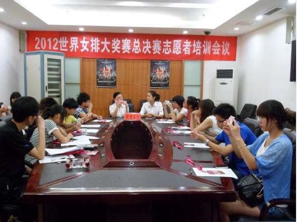 为提高我院志愿者们在世界女排大奖赛总决赛中的服务技能,增强志愿者们的环境适应能力,2012年6月24日,我院组织了14名志愿者在北仑体艺中心进行岗前培训,此次培训为期半天,整场培训由北仑体艺中心销售组负责人贺展鹏全程主持。