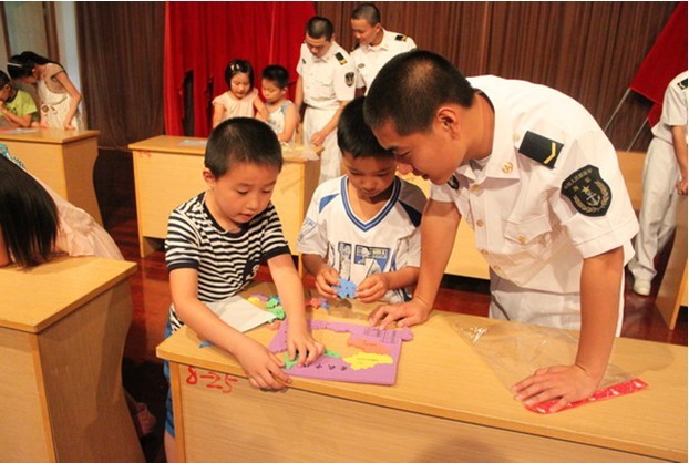 在部队官兵的带领下,大家怀着强烈的好奇心参观了部队营院、官兵宿舍、军营荣誉室等,并听官兵代表介绍了部队的发展历史、军营内务整理知识和国防小知识。随后,我们举办了一个小型的联欢活动,此次活动在欢乐友好的气氛中展开。“叠军被”比赛、“记忆大考验”比赛、“拼地图”比赛、“正向思维与逆向思维”比赛、“呼啦圈”比赛、“挑战你的舌尖”等一个个充满童趣的小游戏迅速拉近了红领巾们与部队官兵的距离,高潮此起彼伏,整个活动在一片热烈的掌声中有序地进行,不仅让军人们领略了红领巾的青春朝气,也让红领巾们见识到了军人的威武身躯,使我们在亲近军人的同时,也体验到军人的严谨作风。
