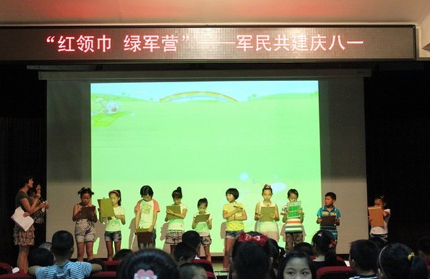 为加强军民共建工作,进一步融洽军民关系,八一建军节前夕,九峰山社区开展了“红领巾?绿军营”――八一军民共建活动。7月27日,社区工作人员和我院大学生志愿者带领社区假日学校的红领巾们来到军营,为92214部队、92058部队6分队的官兵们送上了节日的问候。