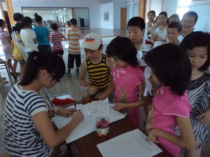 本次活动地点定为宁波市北仑区新浦社区,该社区设有专门的文化服务中心以及专业老师,这无疑给学生上学带来了极大的方便。支教过程中,我们几个成员对各个年级、各个学科进行了大致的分工,配合社区提供的专业老师帮助同学们度过一个充实的暑假。同学们的积极性很高,课上,孩子们认真的听讲,课程丰富多样:珠心算,象棋,书法,绘画,心理讲座。课下,志愿者们和孩子们做各种游戏,教他们诵读经典,折纸,水果拼盘以及成语接龙等。此外,针对学生的暑假作业,志愿者们更是不厌其烦的辅导答疑。期间志愿者们还带领孩子们参观了北仑博物馆,组织了文化晚会,同学们和志愿者们相处融洽,同学们没有虚度暑假,志愿者们更是从中得到了锻炼。