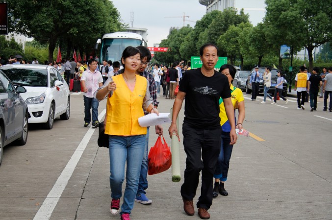 火车东站和客运中心站的志愿者们乘坐校车早早的到达了目的地。他们在新生到来之前搭好帐篷,搬好椅子。为舟车劳顿的新生和家长提供一个休息的坏境。准备就绪以后,一部分志愿者在出口处举牌迎接新生并引领到接待处,一部分为新生提行李到达学校接送车上。志愿者以热情迎接新生,带给新生家人一样温馨的感觉。
