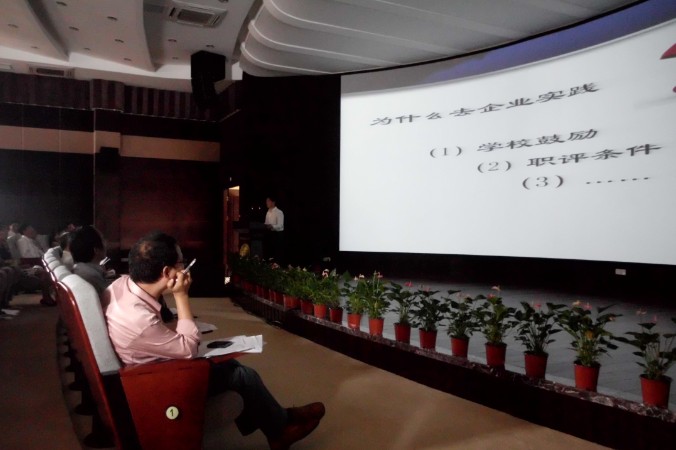 参加报告会的老师都提前进入了会场。进入会场,宽大的银屏,一幅幅生动的实践图片展现在银屏上。此次暑期社会实践共有9名教师下企业参与社会实践活动,4名教师到外面学习,包括出国等。