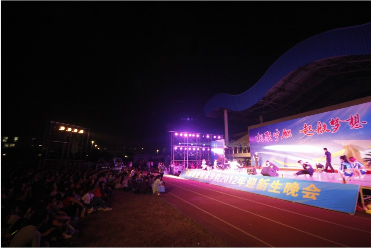 怀着梦想,带着憧憬,来自五湖四海的大一新生相聚在宁职院参加这个其乐融融的迎新晚会。9月25日晚18时我院在东校区田径场隆重举行了2012年迎新生晚会,出席本次晚会的嘉宾有院党委副书记邵坚钢老师,学工部宣传部等各职能处室、各系领导。此次晚会的主办方是学工部,团委,承办方是各系团委,校学生会文娱部,社团联合会。晚会分成13个节目进行,每个节目环环相扣,带给我们一种神秘感,让我们拭目以待。