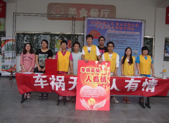 “车祸无情,人有情”,9月23日会计3101班的余秀敏在上班途中被汽车撞倒,随后肇事司机驾车逃逸,余秀敏头部重伤,至今仍在重症监护病房昏迷不醒,巨大的医药费对于原本并不宽裕的家庭更是雪上加霜,正当大家为肇事司机的这种行为感到心凉时,工商管理系志愿者指导中心的志愿者们面向全院发起了爱心募捐活动,这次的募捐活动让大家知道――人间还有真情在 。