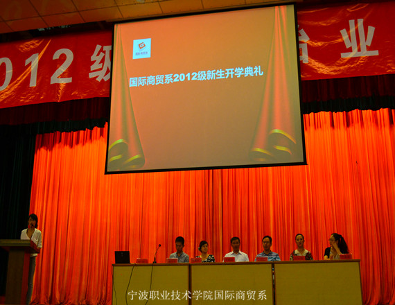 图为:国际商贸系2012级新生开学典礼