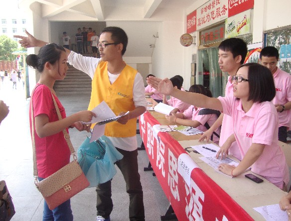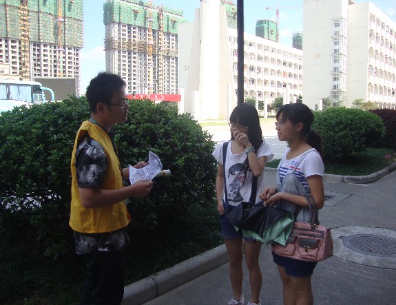 图为:志愿者努力地向同学们介绍此次活动的情况