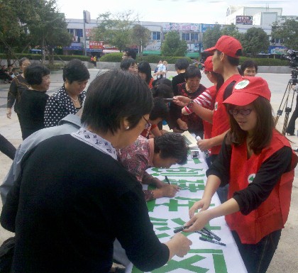 经过了一下午的等待与坚守,横幅上已被群众们签满了姓名,看着这满满的姓名志愿者