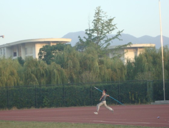 图为:运动会选拔项目之――标枪选拔
