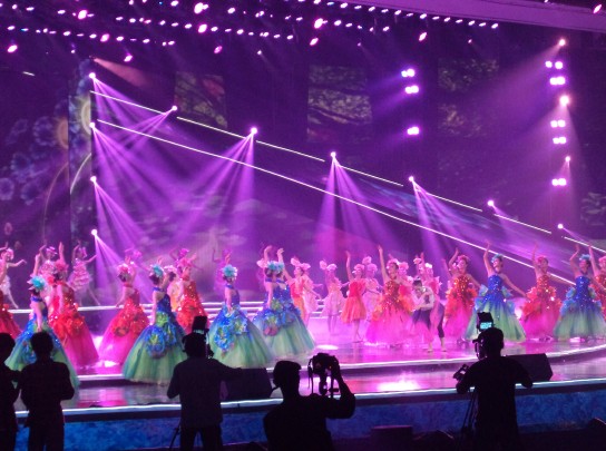 最开始的表演是情景音画《汇》,惟妙惟肖的表演,各自色彩接连上演,随着现场的灯光效果,仿佛置身于万紫千红中,充满了对生活的热情;之后,则是来自外国友人非洲圣火鼓乐团、爱尔兰舞蹈团、巴西舞蹈团等的世界联舞《海港不夜》,在这个不夜的海港,我们以最热烈的掌声回应着我们对于这些外国友人最大的肯定;接着出场的是中国好声音四强的丁丁,一首《爱要坦荡荡》带动了现场的气氛。之后,是以记录短片的形式讲述着生活在北仑区的外籍居民们讲述他们在北仑的生活故事,我们聆听着他们的讲述,作为北仑人,我们十分骄傲;精彩一直都在继续,之后的“五洲唱响”组合带来了一首《五洲四海》,表达这个五洲四海,我们都是一家人;美丽的《吉祥海》,慷慨激昂的《东方大港》,柔情似水的《拥抱大海》,扣人心弦的《万马奔腾》,更让我们屏住了呼吸,即那首奥运的主题曲《我和你》,让我们拉住了彼此的手。