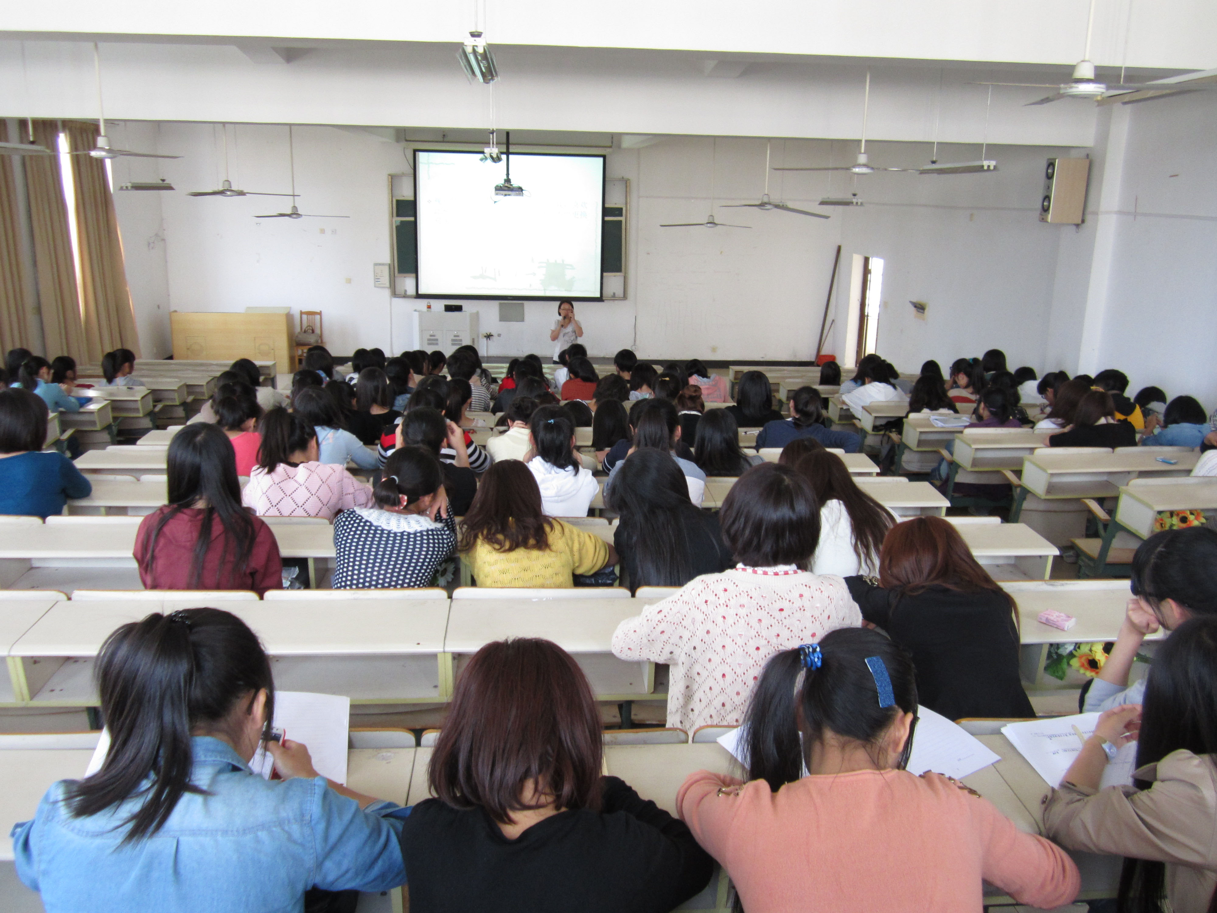 图为:同学们坐听讲座