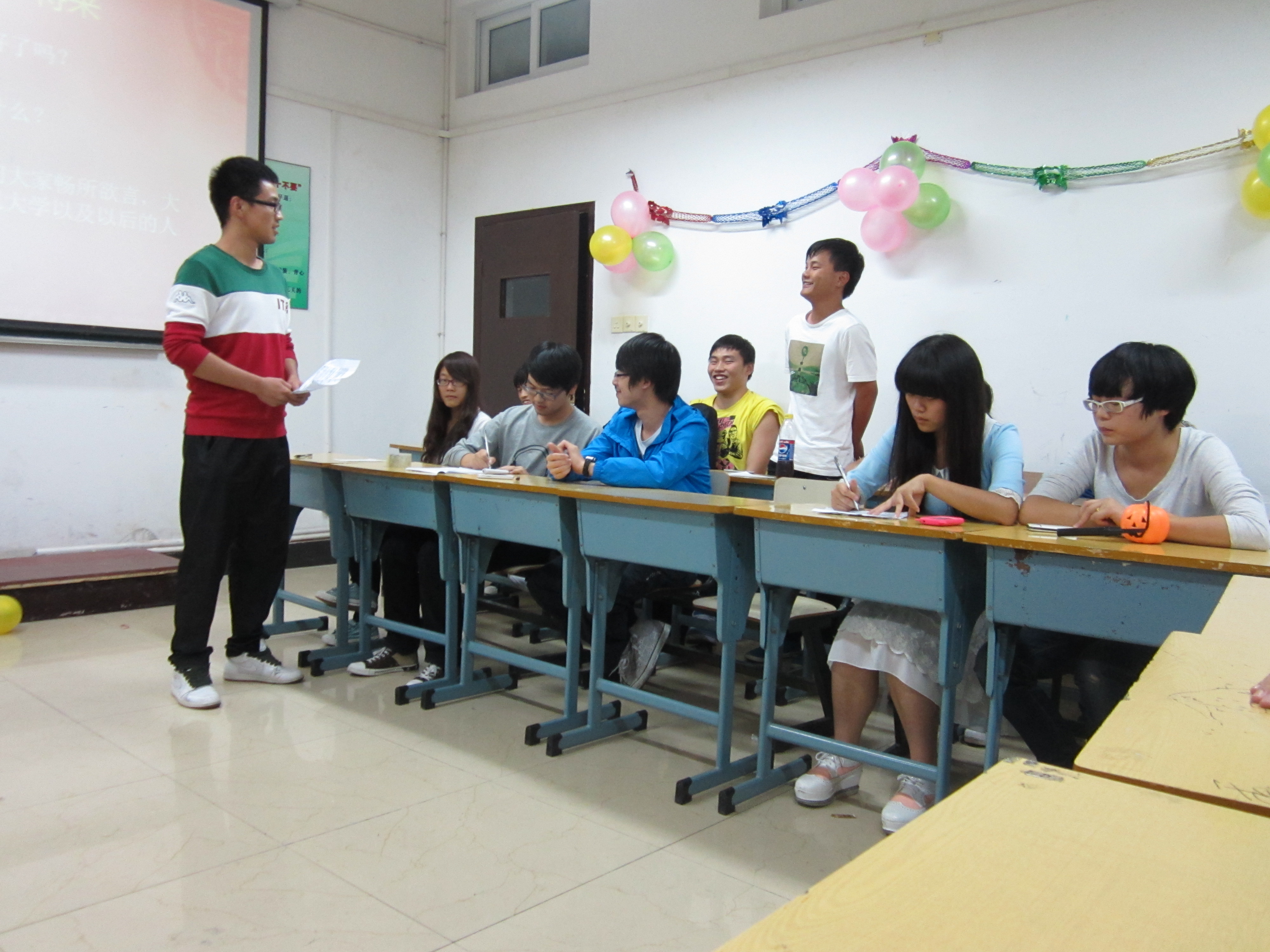 “青春是美好的,友谊是珍贵的……”,在主持人慷慨激昂演讲中拉开了序幕。俗话说,生活因为有了回忆而变得丰富多彩。本次团日活动首先播放了同学们在军训时起的一段视频,那一张张被定格的笑脸,一个个搞怪的表情,让在场的同学们时不时地发出一阵阵笑声。当同学们开始畅谈他们的人生规划时,则一改刚刚欢乐的气氛,变得严肃起来。更有数名学生代表走上了讲台,畅谈了他们的理想和对未来的希翼。化工3123班的王昊同学还为在场的同学带来了一首自弹自唱的歌曲――《故乡》,引起了同学们的共鸣。接下来,更有一个个小游戏 “你做我猜”将这次的团日活动推向了高潮。评委学姐学长们也忍不住要参加,结果秒杀了全场一举夺冠,而输掉的同学们接受了学姐学长们的挑选的另类搞怪惩罚。输掉同学们的搞笑表情,逗笑了全场的同学。而在“五毛和一元”和“我爱你VS不要脸”这两个看似简单的游戏里,考验的是同学们的反应能力,不少的同学在这两个游戏中频频出错,而遭到了游戏惩罚。