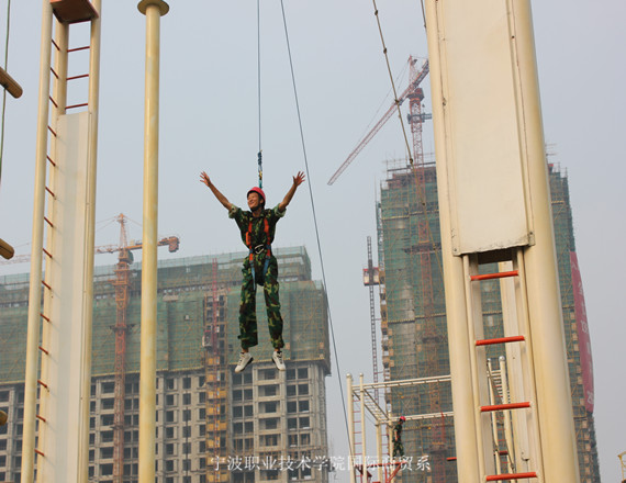 图为:国际商贸系学生参加素质拓展训练
