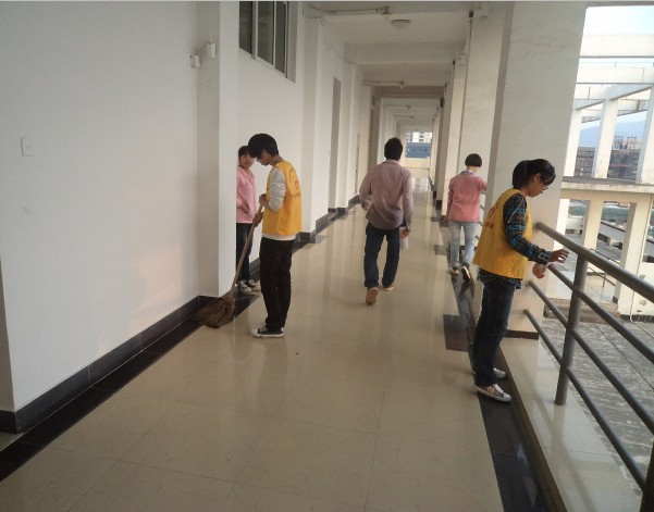 2012年10月23日下午四点,为了营造同学们舒适优雅整洁的学习环境和生活氛围,由工商管理系志愿者部门组织的大一新生37位入党积极分子在东校区教学楼组织教学楼大扫除活动,这也为即将成为优秀入党党员的新生们奠定了一个很好的素质培养基础。大扫除不仅可以培养学生们的劳动力,更能强化大家的凝聚力和向心力。