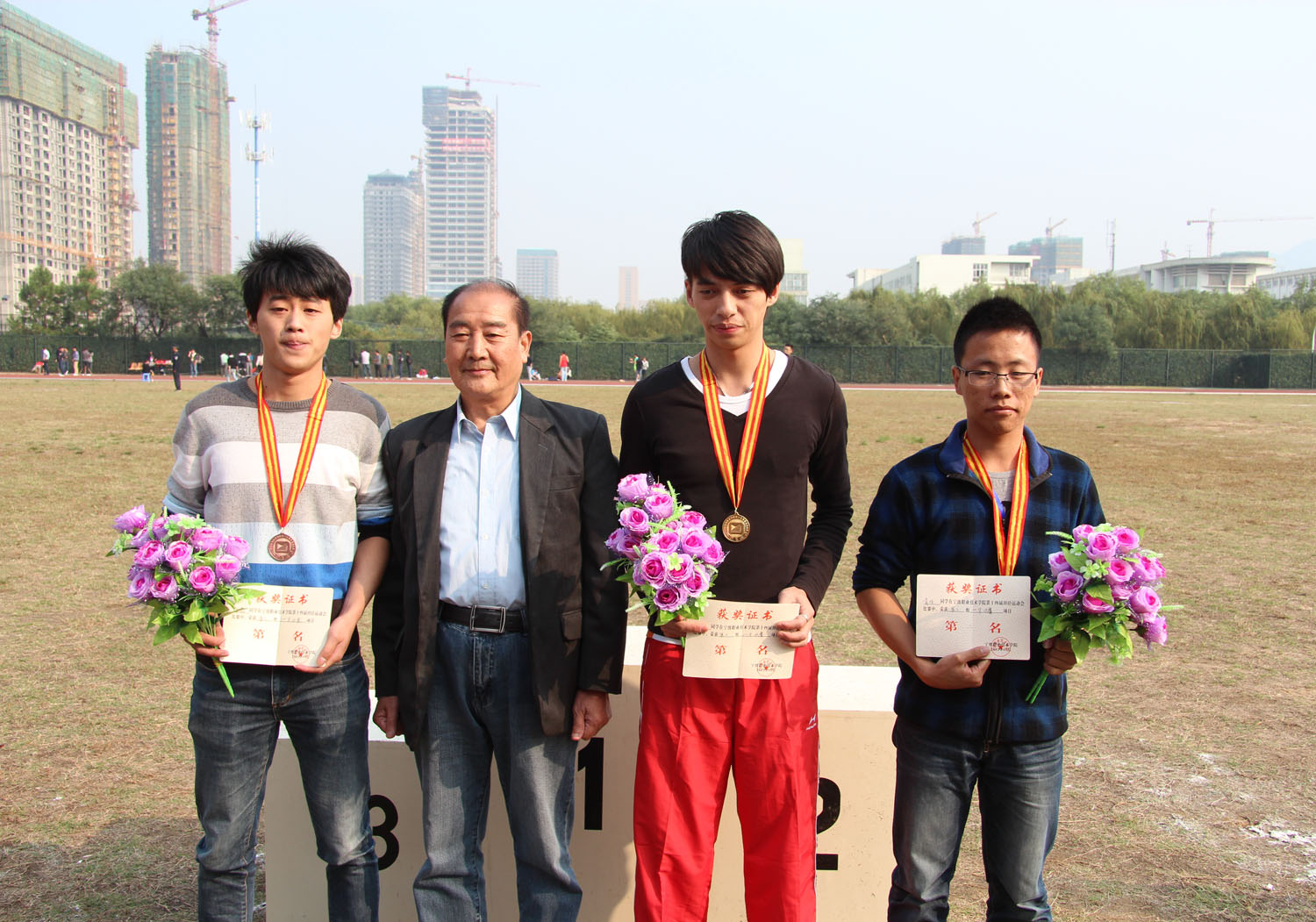 图为:男子组100米的颁奖现场