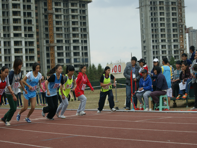 这是女子800米的决赛。国际学院的姜红美同学是这群健儿之一。漫长的跑道上留下了她的汗水。或许她跑得并不快,但是在这个赛道里她并没有放弃,坚持着跑到了终点。这种锲而不舍的精神使我们忍不住要为她鼓掌。这是表示尊敬的掌声,这是表示无比荣耀的掌声,这是用生命在奔跑而得到的掌声。她为我们展现了怒放的生命就是不断地挑战自己,超越自己。而参加男子800米决赛的国际学院的胡焕磊同学也十分优秀。对手个个强健有力,在这样的压力下他毅然使出了全力奔向终点。时间好似要在那一瞬间永远停顿下来。阳光下,跨越的双腿,有力的手臂,沉重的呼吸,仿佛都静止了。这一切就像一幅泼了颜料的画,和谐的美感,使人不禁要欢呼。在踏过终点线的那一瞬间,一切都恢复常态,比赛结束了,但这一个时刻的画面将永远定格在这个操场上,永不磨灭。
