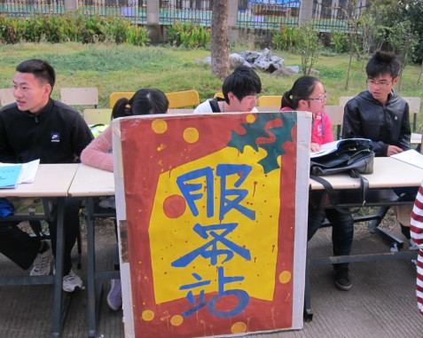 为了使运动会进行的更加成功,为确保各位运动员在比赛期间毫无后顾之忧,早在运动会第一天,工商管理系便已在主运动场外设置了服务站方便各部门进行后勤工作,工商管理系各个部门分工明确,齐心协力,做好一切服务工作。