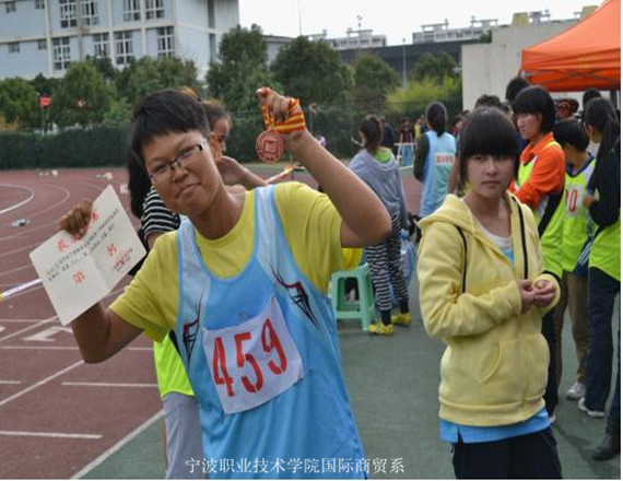 国际商贸系涉外3123班的陈婷菲同学为了迎接本次运动会,取得更好的成绩,同时也为了锻炼自己的身体,本学期刚开始,她就积极参加各项体育活动与锻炼,充分显示出她过人的体育道德与精神。陈婷菲胜利的果实固然很灿烂,但是为了胜利所付出的辛酸却只有自己才能够知道。在领奖完毕之后的采访中,陈婷菲同学虽然一直在微笑,似乎沉浸在胜利的喜悦中,但同时,她表示很遗憾只能获得了第三名,认为自己发挥的还不足够,她认为她能可以获得更好的名次。