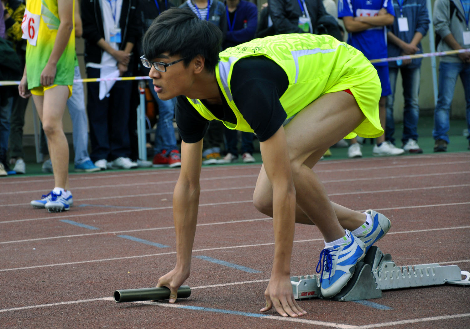 图为:化工系运动员要开始男子4×400米的比赛