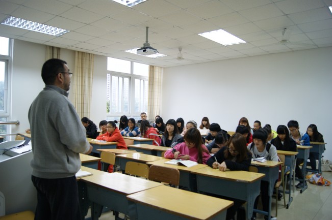 下午1点30分,第一场是语言类期中教学座谈会。到场的学生代表,有学委和随机抽到的各班学生。学生和老师座无虚席。在主持人胡老师的主持下,各专业各班学生轮流发言。用他们自己在班级中学习的亲身感受表达自己的看法和在学习过程中遇到的问题,也为班级更好的学习提出了宝贵的建议。会议最后由胡成明老师总结,教学中主要问题有软硬件设备问题,教室卫生和使用等问题。针对这些问题,胡老师表示近期会派人检查整栋教学楼的设施问题。在教学上,会找相关老师进行交流,将会采用流动教室的方式提高教室使用率。上完课后由任课老师负责教室卫生问题等方法进行解决。会议讨论气氛十分浓厚。