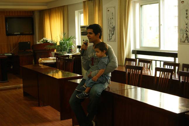 在玉兰社区居住着很多外国人,在这里成立了一个英语俱乐部,由外国居民教小区的孩子们学习英语,青年志愿者们这次的活动就是来协助孩子们与老师之间的交流,帮助小朋友们更好的学习英语。这次任课的老师是来自美国芝加哥的尼克夫妇,他们带着一对儿女给小区的孩子上英语课。尼克教的是一群年龄较大的孩子们,通过用英语描述卡片上的内容来教授孩子们知识,同时、也提高了孩子们的口语水平。我们的志愿者也积极参与其中,积极为孩子们充当翻译,方便了老师与学生的交流。尼克的妻子教的是一群年龄较小的孩子们,她教她们读单词,玩游戏,整个课堂上充满了孩子们的欢声笑语。其中也有家长和孩子们一起上课,她们丝毫不逊于孩子们的积极好学,认真倾听老师的讲解,认真的做着笔记。欢乐地时光总是流失的很快,不知不觉,夕阳西下,志愿者们的这次活动也到了尾声。课后,尼克对我们说他们一家都很喜欢中国,并且在中国已经生活了很久,很喜欢这群活泼可爱的小孩子们;孩子们也很喜欢热情爱笑的外国老师。