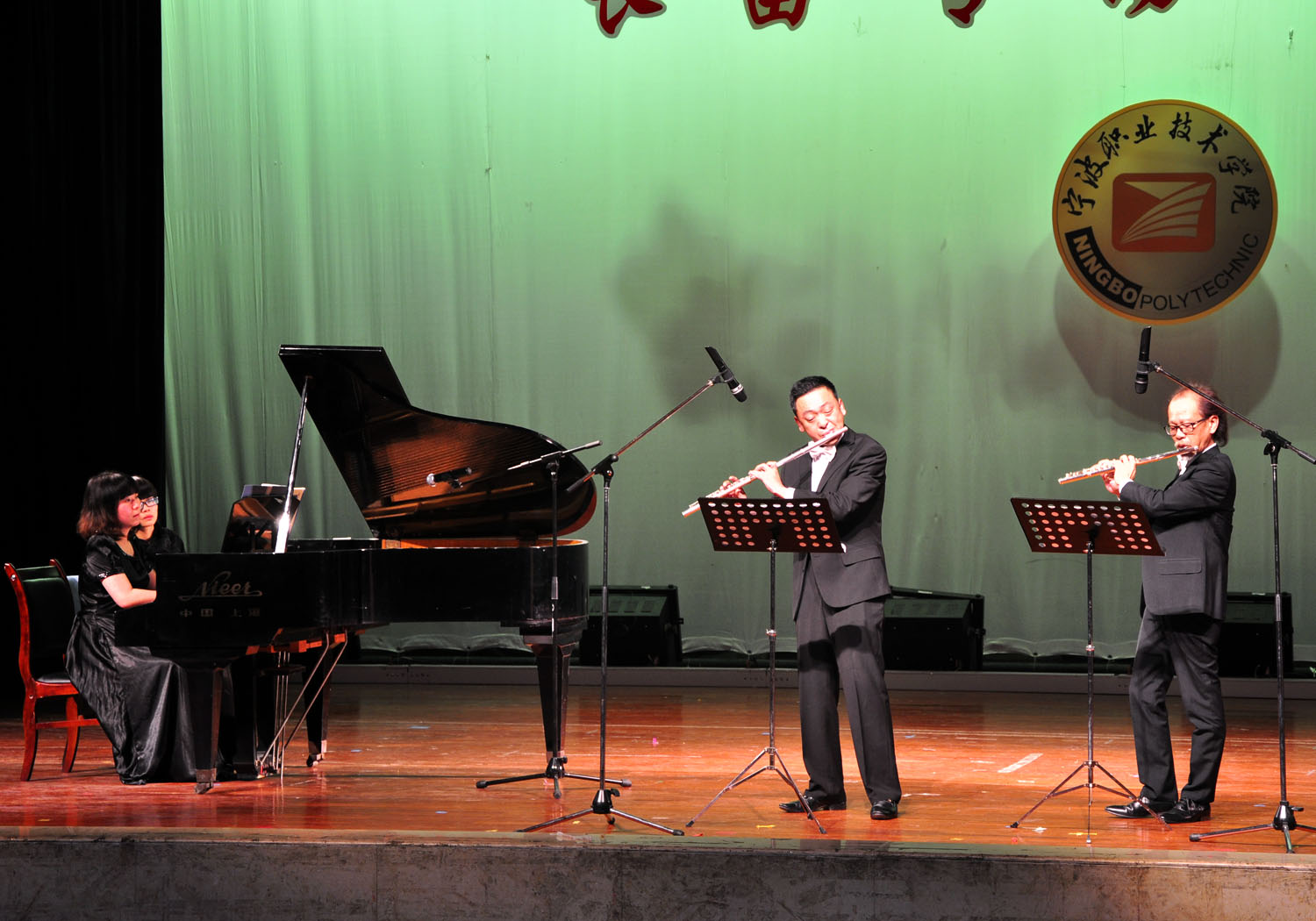 11月15日18点30分,一场由宁波职业技术学院院团委主办,宁波职业技术学院应用化工系团委,宁波维也纳艺术培训中心承办的大学生艺术节之高雅艺术进校园“郭俊杰――长笛专场音乐会”的演出正式拉开帷幕。