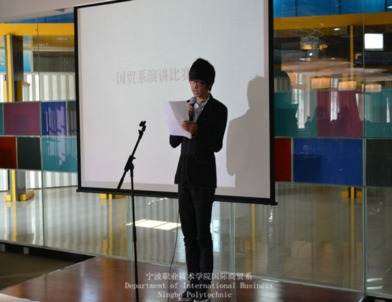 第一位演讲者是国商3122班的陈雯若同学,她演讲的题目是《喜迎十八大,永远跟党走》。她讲到:“少年智则国智,少年富则国富,少年强则国强。让我们永远跟党走,青春献祖国。”这就是对祖国最好的祝福。国贸3122的周详风同学有着浑厚的嗓音,演讲铿锵有力。得到了评委与同学的一致认可。