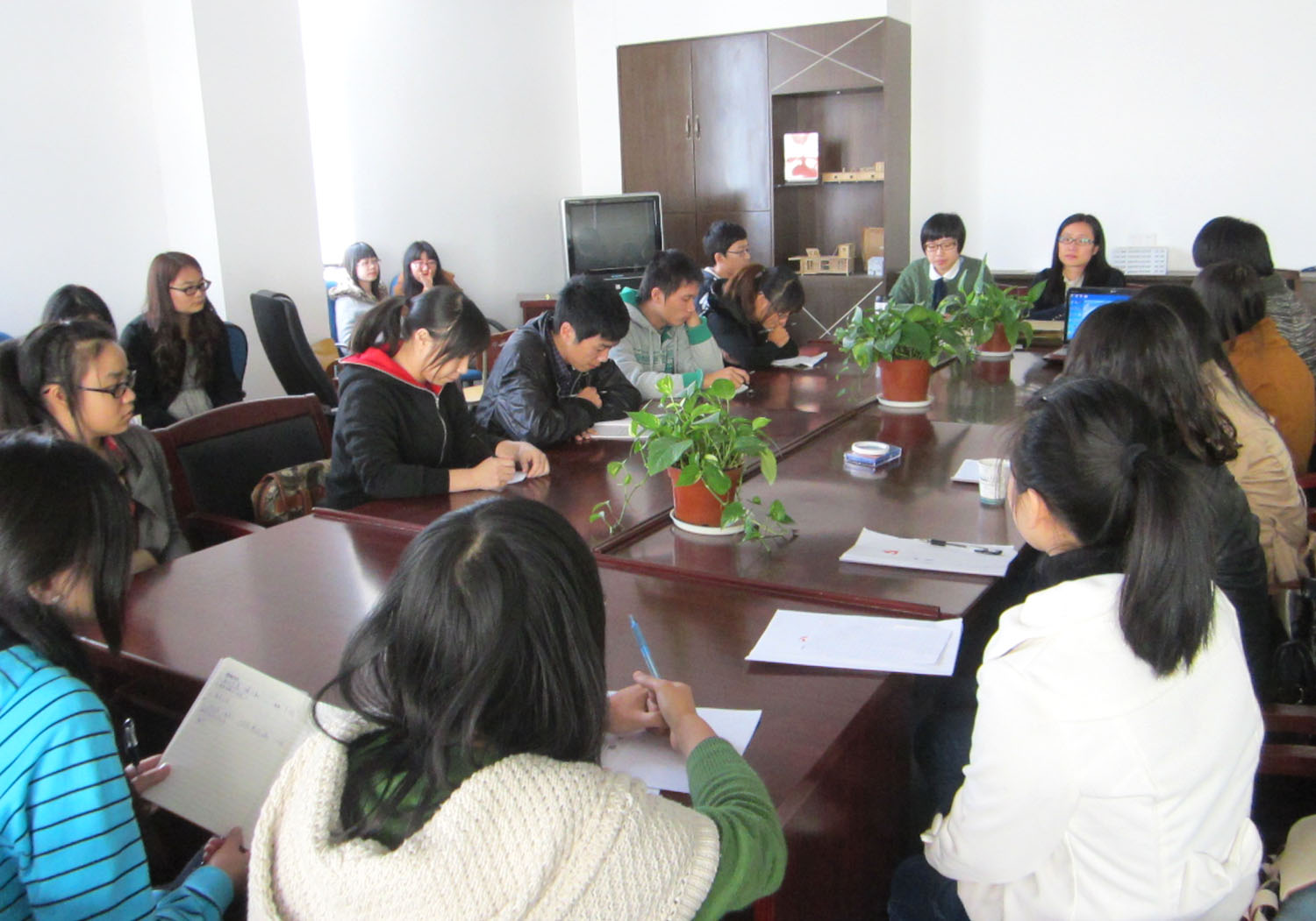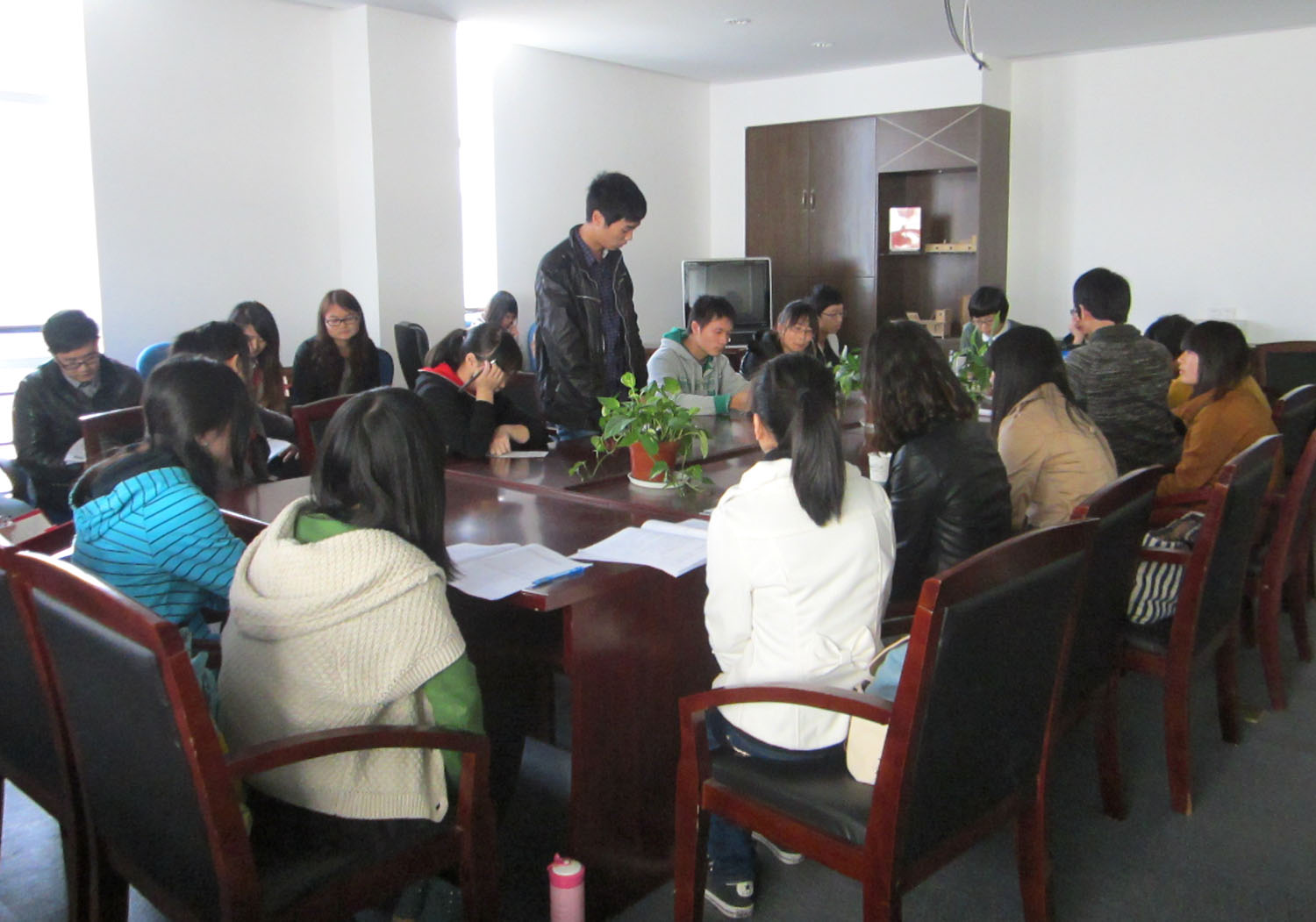 首先,童燕老师对上一年党支部工作满意率的调查做了回报。一共有18人投票,其中15票为满意票,有三位同学因文件丢失等原因投了反对票。童老师对以往工作交接中出现的失误做了深刻地检讨,并向在场的同学表明了在今后的工作中会更加细心负责,希望能得到同学的认可。