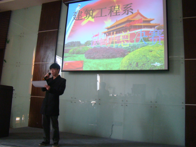 2012年11月14日12:30,建筑工程系在明德楼105教室举行十佳演讲之决赛。参加本次决赛的评委有戚音老师及上届十佳演讲者朱王振、章健、朱静文。